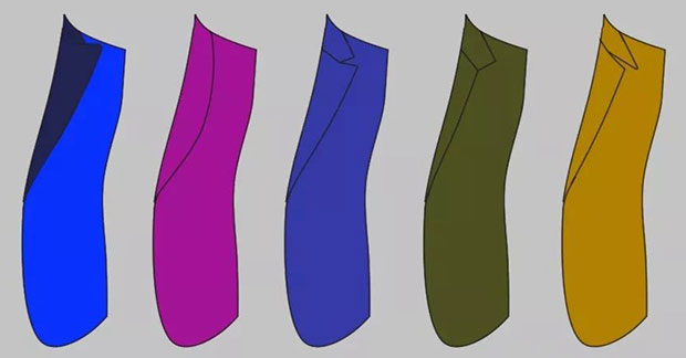值得注意的是,夸張的領(lǐng)型設(shè)計(jì)會(huì)破壞男士西裝原有的、偏程式化風(fēng)格的視覺平衡,從而喪失男裝風(fēng)格原有的感覺和味道,因此,定制西裝的領(lǐng)型變化不宜過大。當(dāng)客戶在我們這里選擇定制西裝時(shí),我們從西裝領(lǐng)型設(shè)計(jì)的疊門、駁頭翻折點(diǎn)的位置和翻駁領(lǐng)形狀及寬度這三方面內(nèi)容來為客戶搭配適合他們的西裝領(lǐng)型: