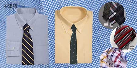牛津紡面料是將白色與其他顏色的棉紗以經(jīng)緯異色線的方式編織,形成細(xì)小點(diǎn)狀方格的一種面料(下圖底紋),可以用質(zhì)地堅(jiān)實(shí)布料做的領(lǐng)帶,如厚絲織物,羊毛或棉織領(lǐng)帶與之搭配。