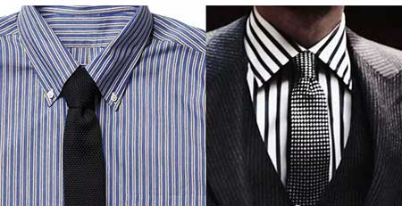 首先,我們要說(shuō)的襯衫花型是“條紋”,條紋襯衫可大致分為細(xì)條紋襯衫和粗條紋襯衫。其中,細(xì)條紋襯衫最宜搭配單色的領(lǐng)帶,絲質(zhì)或針織型領(lǐng)帶均可,而粗條紋襯衫,如孟加拉條紋的襯衫,則可以搭配細(xì)小圖案的深色領(lǐng)帶。